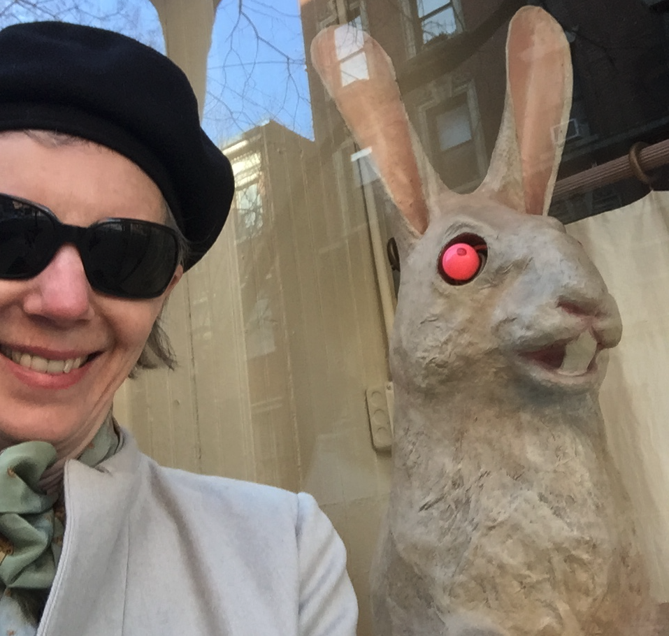 Traumatized author after unintentional shock therapy with a five foot tall rabbit