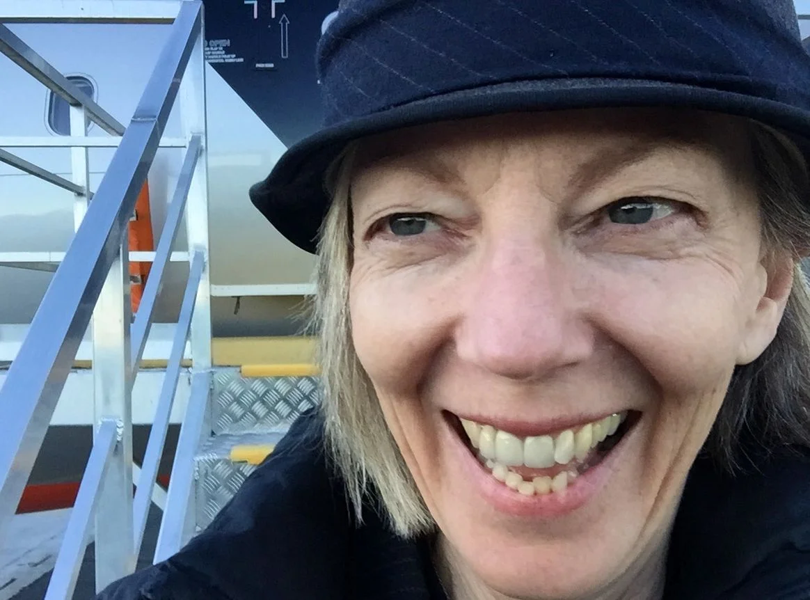 Airports excite me with their smell of the gasoline, the deafening noise of plane engines revving, taking off and landing all around. I pulled out my phone to snap a selfie with, I hoped, our plane in the background. There was raucus shouting and I turned to see airline personnel in orange vests on the tarmac waving - at me? As they continued to call out, I burst out laughing (see below), embarrassed and grateful that they were cheering me on in this still uncomfortable campaign of shameless self-promotion.