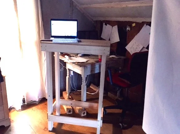 After listening to me hint about how much I’d like to be able to work at my computer while standing, Mr. Green made me this gorgeous standing desk for my studio.