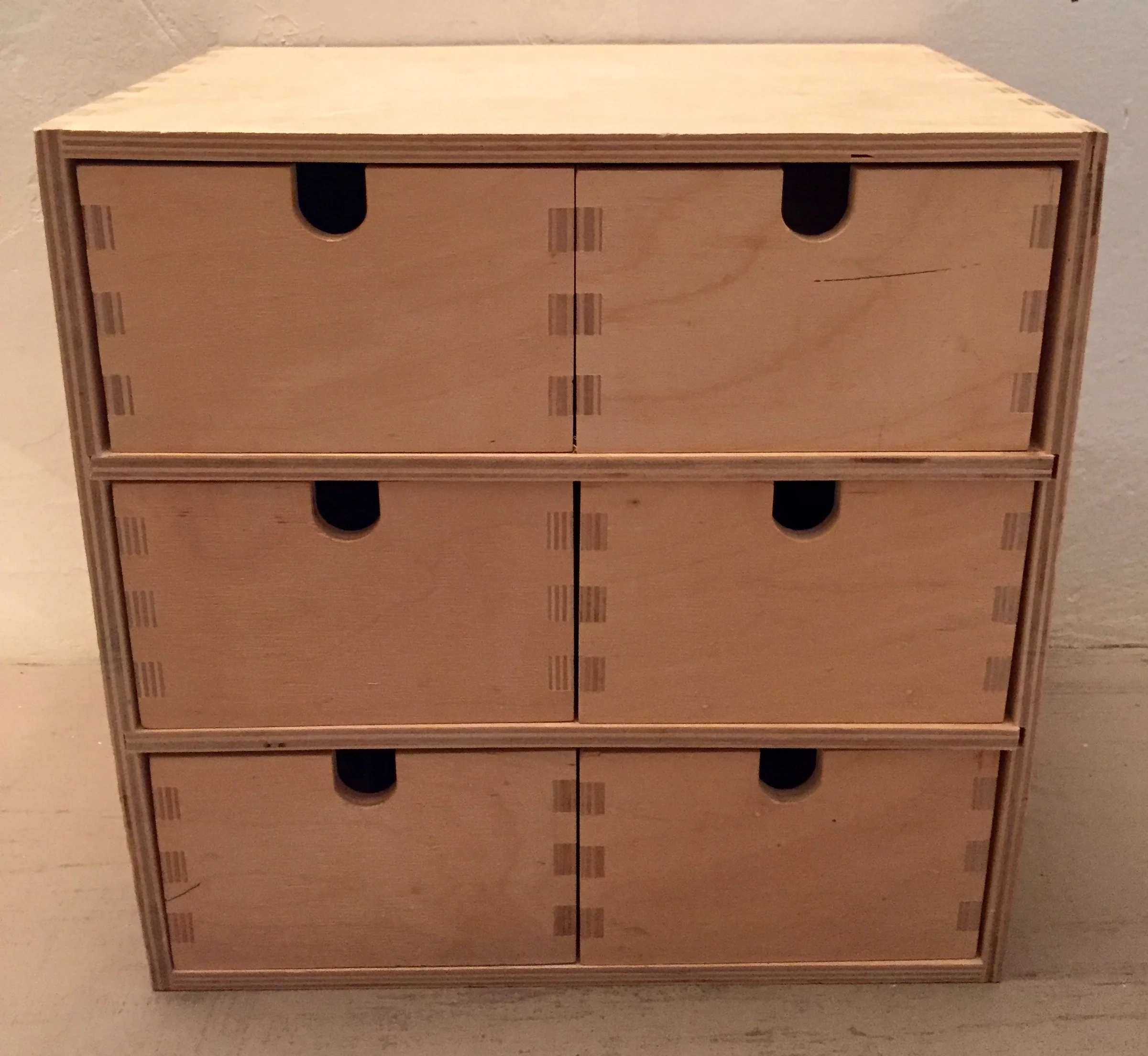 We got this at Ikea in around 2000 to organize the clutter of pens and paper clips. You could substitute any strong box of the right height.