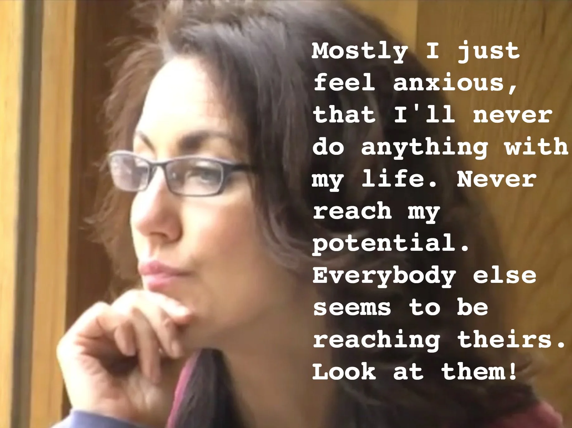 Living from a tap root of the conviction of my inadequacy is what (I think) I was referring to as ‘the clenched-teeth-and-fist approach to career success’ (and to life, for that matter). I’d like to think that that belief has been falling away for decades. It may have taken a more decisive hit this summer ... but only a look through those free-writing pages will jog my memory on the details.